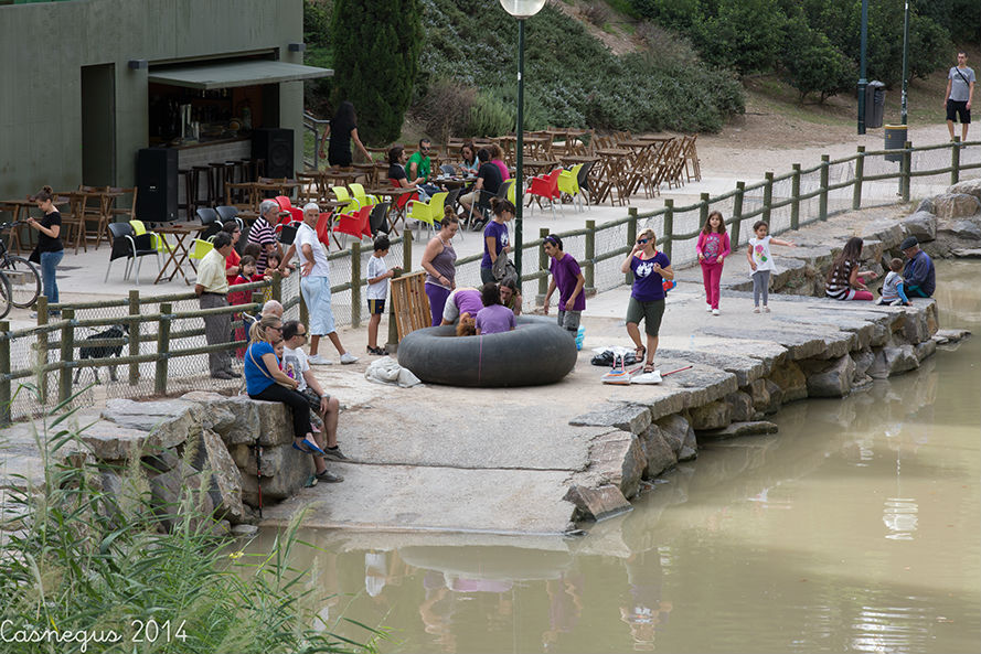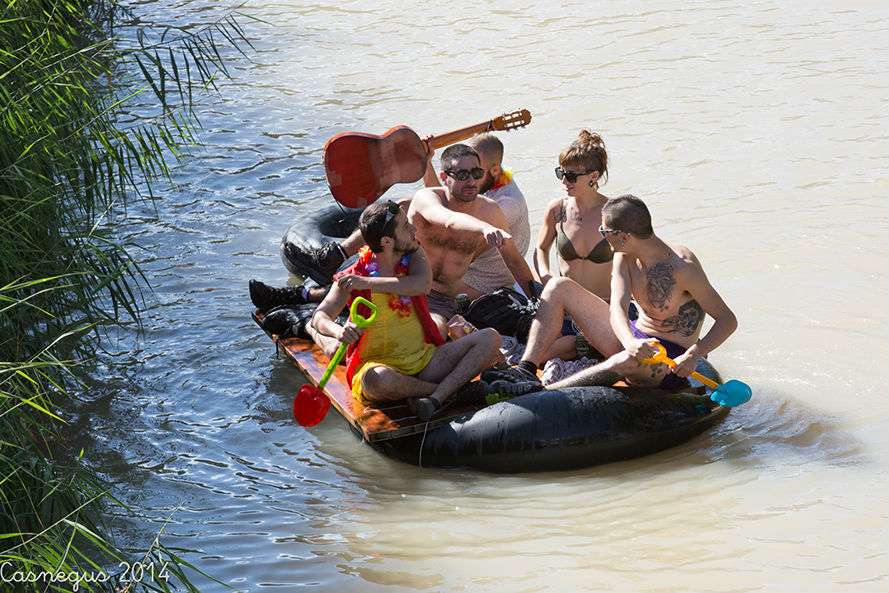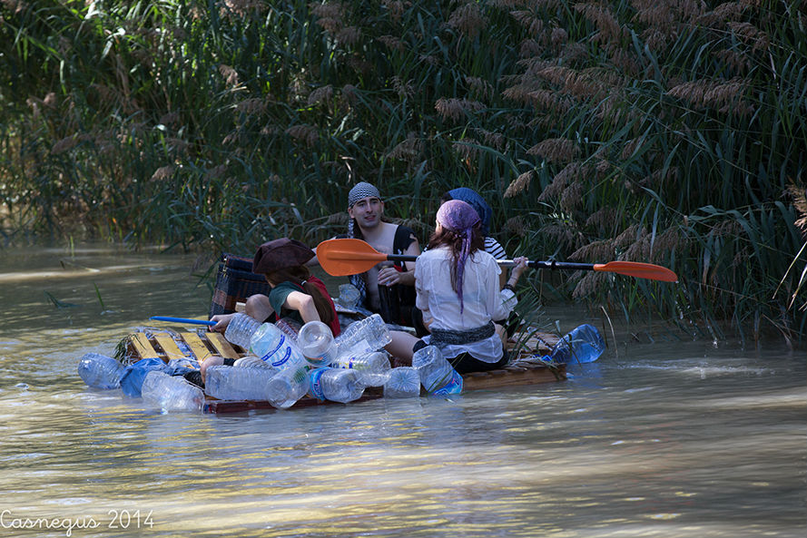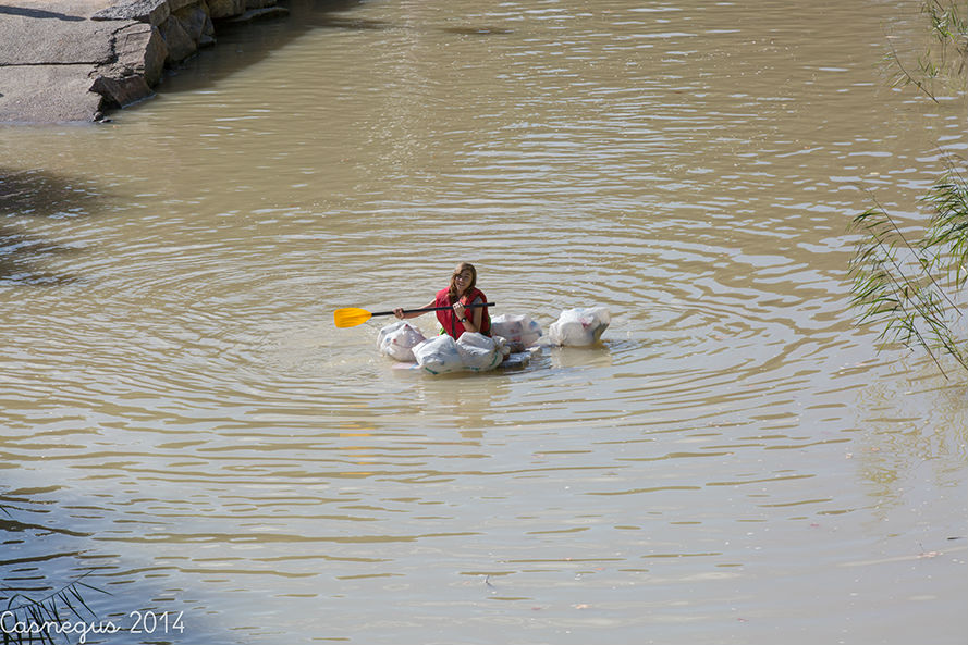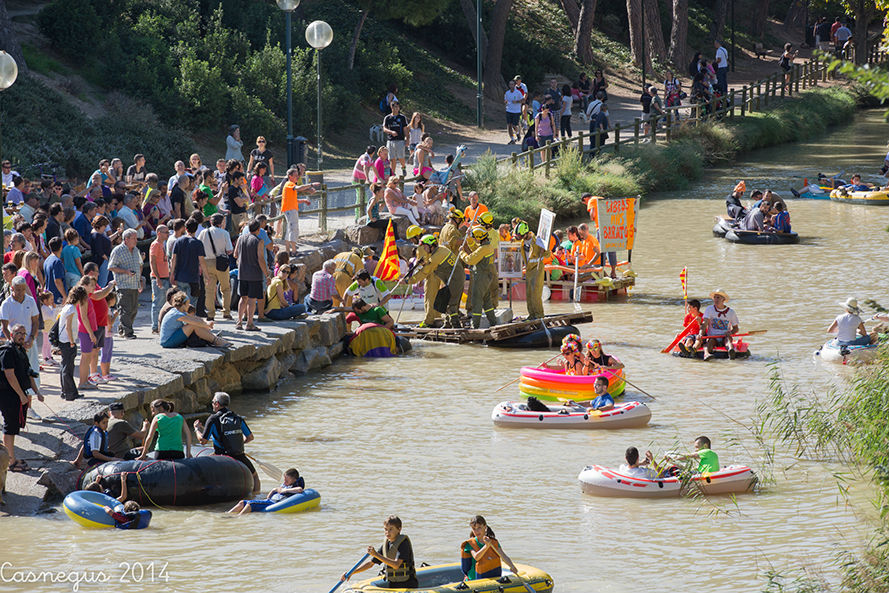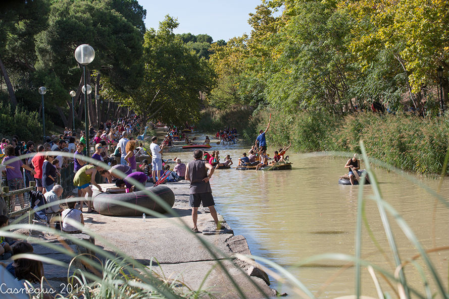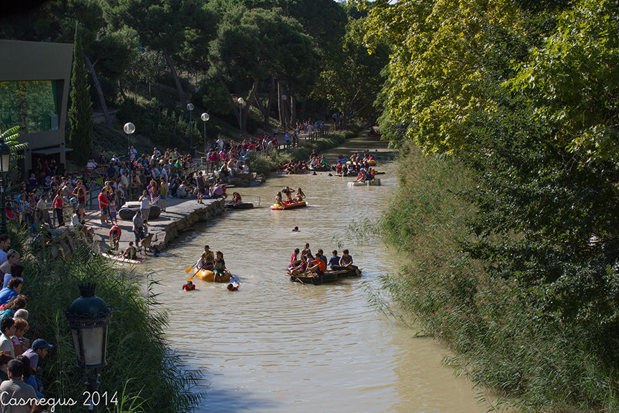 Esta mañana (domingo) me he subido al Aula de Naturaleza del Parque Grande J.A Labordeta para ver si estaban con el anillamiento de aves, al no encontrar nada que me interesara he continuado por al Canal Imperial y al pasar junto al bar-terraza el Corazón Verde se observaba movimiento de flotadores de ruedas de camión.... he pensado y...¡la bajada del canal!