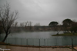 Nos llovió todo el sábado y en un ratillo de la tarde salí con paraguas a hacer unas fotos. La luz era muy buena y daba unos tonos sin sombras. El Lago Termal emitía vapor de agua y tenia una aire fantasmal.