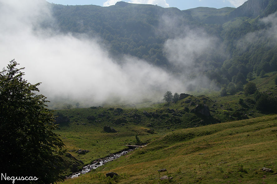 nubes bajas desplazándose. Bois de Espelugüerre. Pirineo francés.