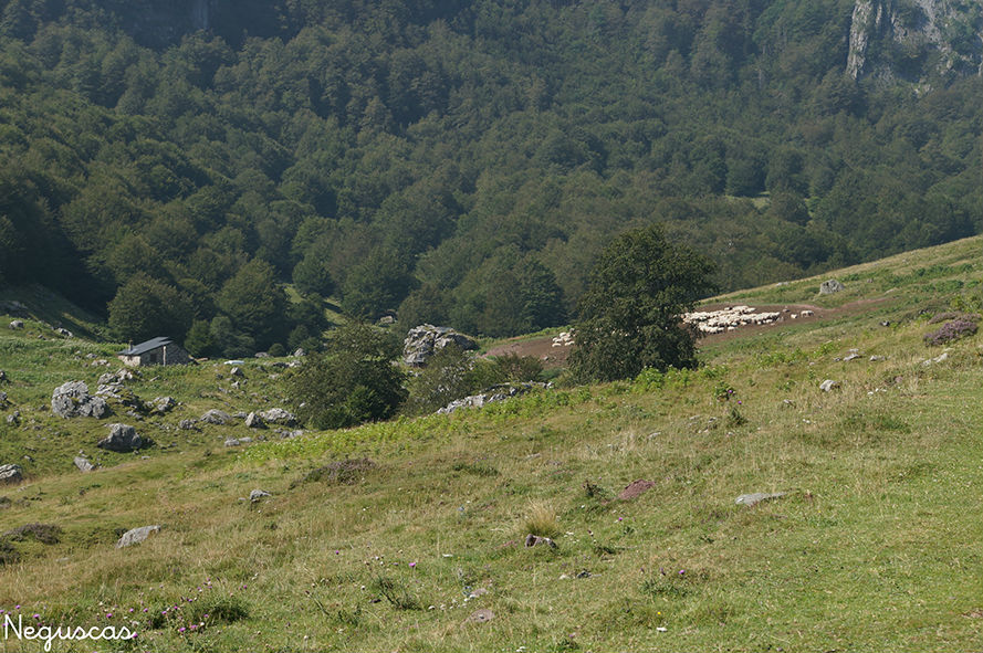 Casa del pastor y rebano . Bois de Espelugüerre. Pirineo francés.