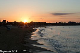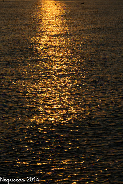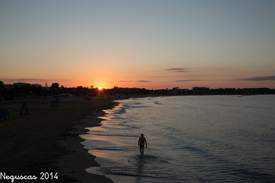 Me voy al espigón donde nos vamos con Alicia para ver la puesta de sol, aprovecho con los patos del puente con una luz de atardecer muy amarilla. Dos cervezas y espero que se vaya el sol. Sobre las nueve y diez uso el trípode para fotografiarme yo también con el sol de fondo y luego unas tandas de atardecer.