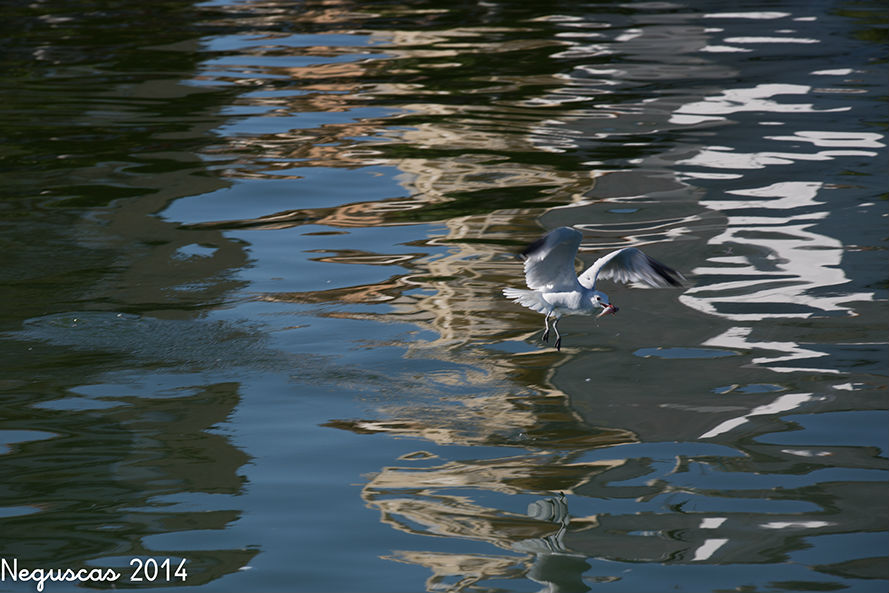 Por la tarde sobre las 7 en el puerto haciendo fotos a las gaviotas (de dos tipos, las blancas y la grises) aprovecho para usar el ¨enfoque al servo" y sigo sus evoluciones, tanto volando en el aire, como recogiendo peces en el agua.
