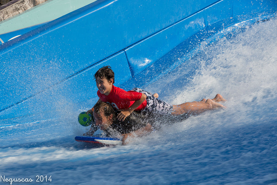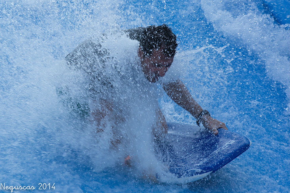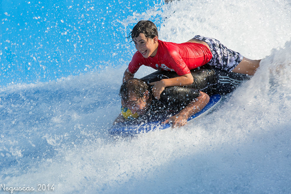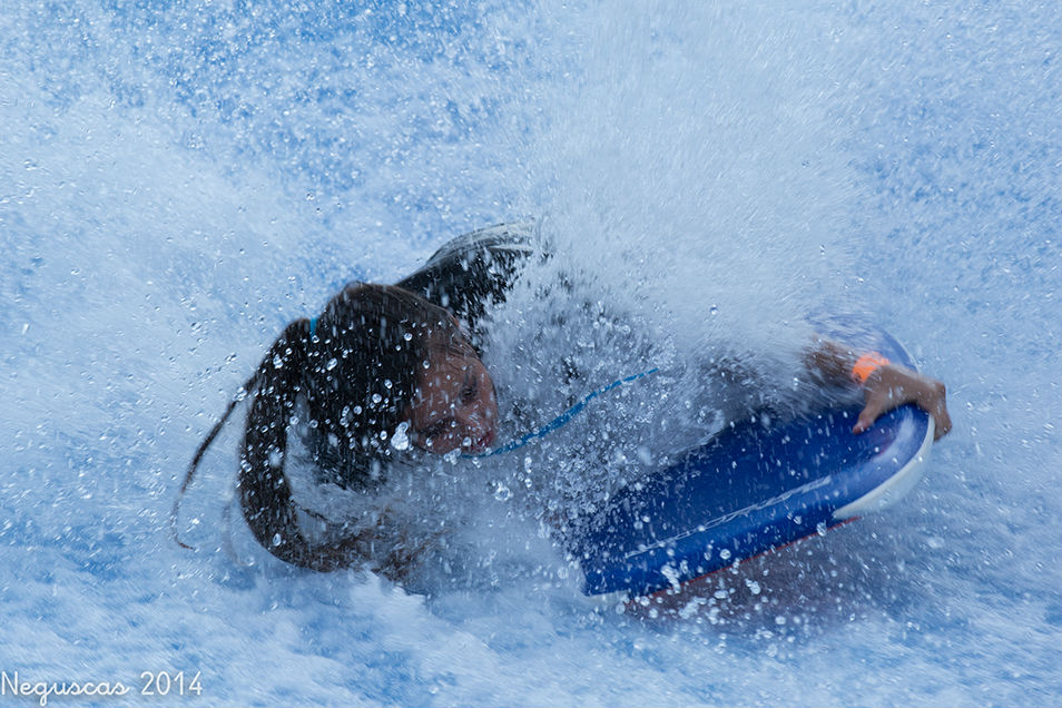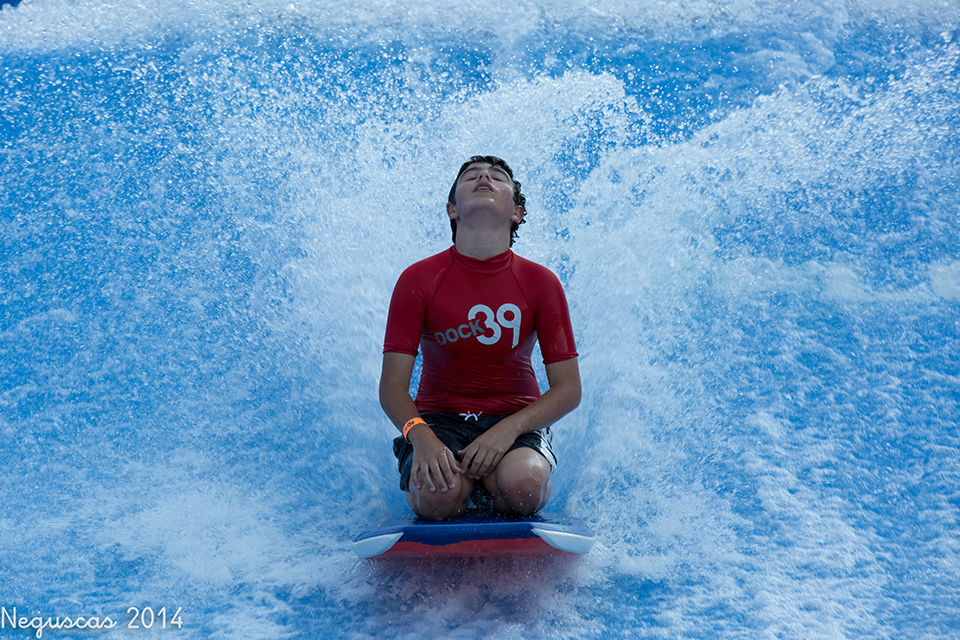 La empresa que se encarga de la explotación Dock 39, tenía unos grupos de niños y chavales haciendo unos juegos en el FlowRiver, se lo estaban pasando en grande, encestando y deslizándose por la pendiente de agua. Son las dos primeras fotos. después hicieron un concurso de movimientos en el agua, fue una pena que no fueran "profesionales", pues se hubieran puesto de pie. pero aún con todo las fotografías son espectaculares.