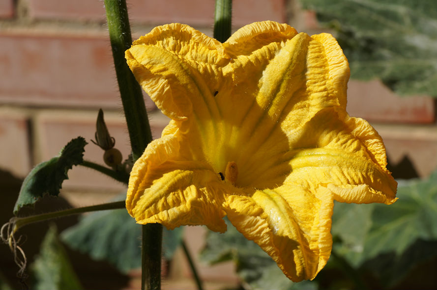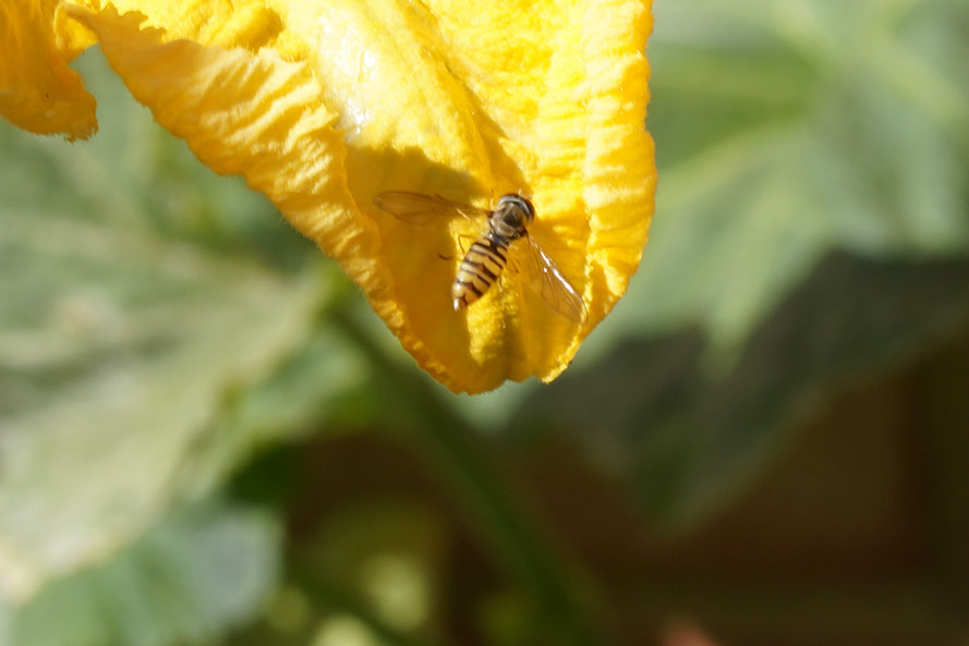 Flor de calabaza con insecto. Patio del colegio. Zaragoza.