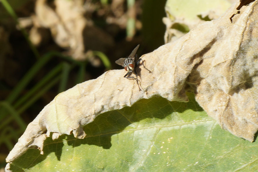 Mosca en hoja de calabaza. Patio del colegio. Zaragoza.
