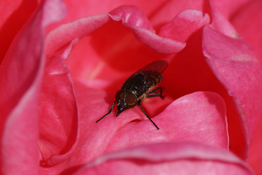 Mosca en una rosa. Patio del colegio. Zaragoza.